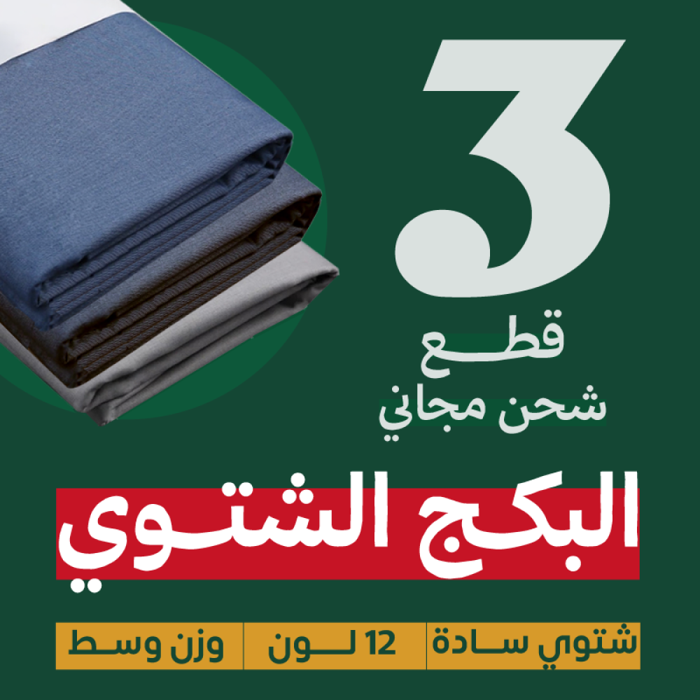 استمتع بالأناقة والدفء في موسم الشتاء مع بكج مكون من ثلاث قطع قماش شتوي كويتي فاخر، متوفر بـ 12 لونًا أنيقًا يناسب جميع الأذواق. يتميز القماش بوزن متوسط (350 جرام) يمنحك إحساسًا بالراحة والدفء، إضافةً إلى متانته العالية التي تجعله عمليًا ومقاومًا لكثرة الغسيل والكي.